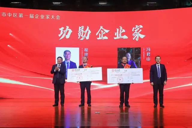 市中區(qū)委、區(qū)政府決定授予程終發(fā)、馮君山2名同志“市中區(qū)功勛企業(yè)家”稱號,每人獎勵稅后100萬元;授予牛迎東等4名同志“市中區(qū)優(yōu)秀企業(yè)家”稱號,每人獎勵稅后20萬元;授予李永利等13名同志“市中區(qū)行業(yè)領(lǐng)軍企業(yè)家”稱號,每人獎勵稅后10萬元,授予相增和等15名同志“市中區(qū)行業(yè)領(lǐng)軍企業(yè)家(提名獎)”,并向有關(guān)企業(yè)負責(zé)人頒發(fā)企業(yè)家服務(wù)“綠卡”。